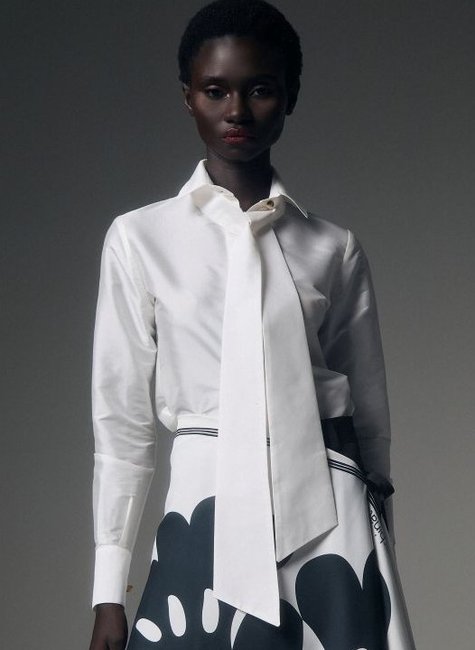 Camisa feminina de alfaiataria em tafetá, um dos clássicos do guarda-roupa com leitura elegante e atemporal. O modelo apresenta gola estruturada com pé de gola e abotoamento frontal, reforçando a tradição da alfaiataria com presença marcante. O fechamento é realizado por botões de massa, enquanto o botão do pé de gola e dos punhos em metal dourado acrescenta contraste sofisticado ao design. A peça acompanha faixa em tecido duplo para laço, permitindo diferentes propostas de styling e marcando a silhueta com delicadeza. Nas costas, abaixo da gola, há passagem específica para o laço, integrando o detalhe ao desenho da peça. Peça clássica com elegância contemporânea.