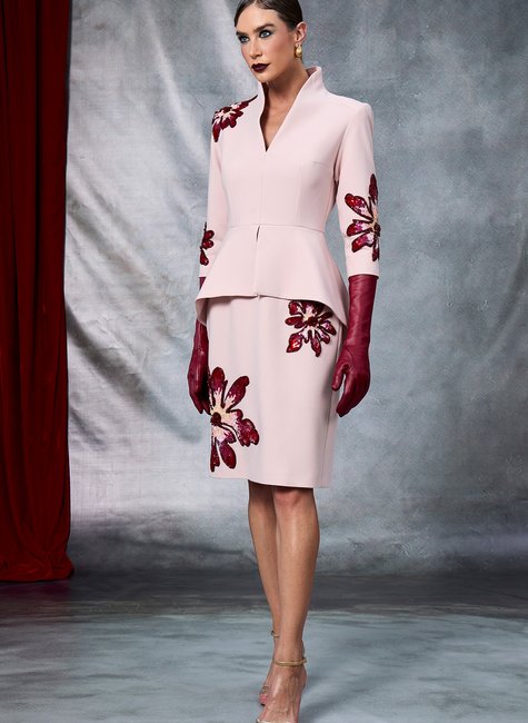 Vestido Midi Em Crepe Com Peplum E Bordado de Flor Vitor Zerbinato