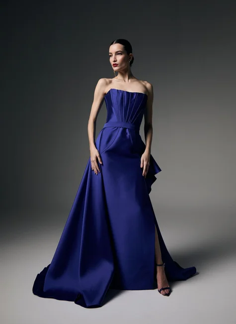 Vestido longo em zibeline com proposta sofisticada e presença marcante. O modelo apresenta decote tomara que caia que valoriza o colo com elegância, enquanto a modelagem estruturada define a silhueta com equilíbrio. O grande destaque da peça é a sobressaia lateral, que se desdobra em uma cascata fluida, criando movimento e um efeito visual de forte apelo couture. A fenda lateral acrescenta leve sensualidade ao conjunto. A peça acompanha duas opções de cinto em tecido duplo, permitindo diferentes leituras de styling e reforçando a versatilidade do modelo. Uma escolha refinada para eventos formais e ocasiões especiais.