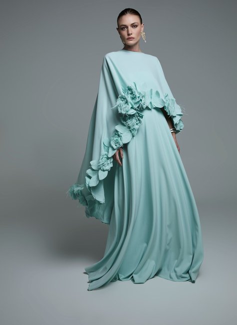 - 1 Vestido Longo De Crepe Com Pelerine - Vitor Zerbinato