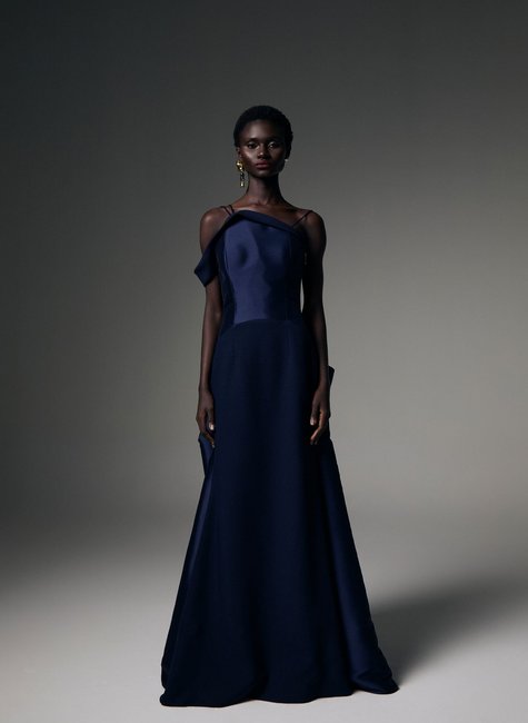 - 1 Vestido Longo Escultural Em Crepe e Zibeline - Vitor Zerbinato