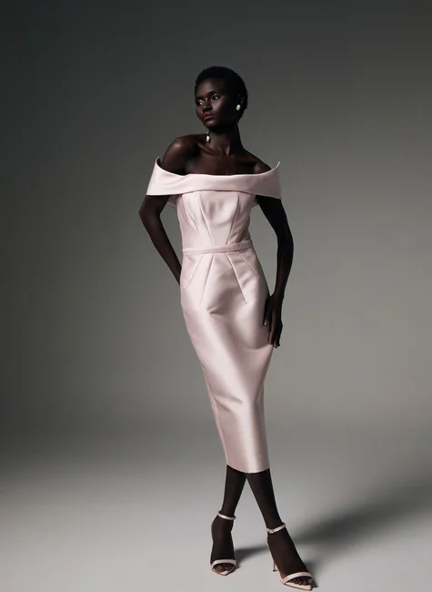 Vestido midi em zibeline com proposta elegante e silhueta marcante. O modelo apresenta decote ombro a ombro, que valoriza o colo e cria uma linha escultural na parte superior da peça. O corpo estruturado define a silhueta com precisão, enquanto o cinto em tecido duplo reforça a linha da cintura e acrescenta acabamento refinado. A saia em modelagem lápis equilibra a composição com caimento alinhado e elegante, resultando em uma peça sofisticada para ocasiões especiais.